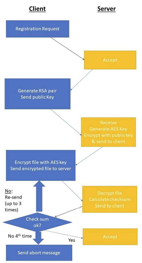 A full stack application to pass encrypted files from multiple C++ clients to a Python server over TCP using RSA and AES encryption in an SSL-like protocol